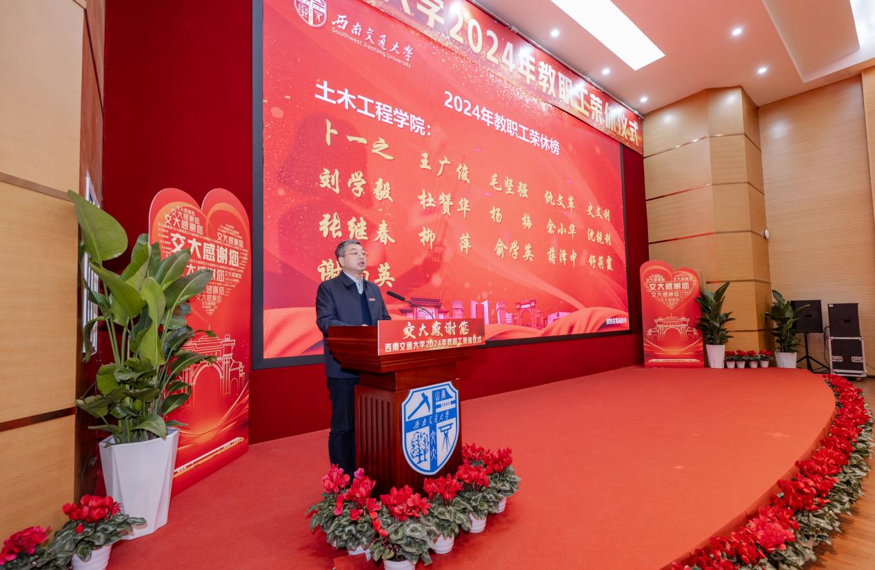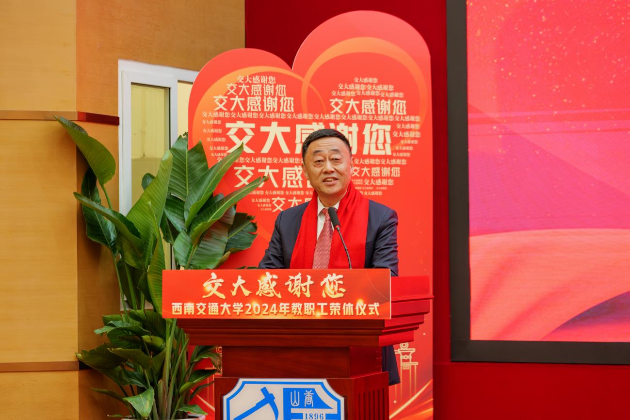 公司仇文革教授作为荣休教职工代表作了《燃尽最后一滴蜡烛,给隧道增添光明》的发言。他深情回顾了在交大求学和工作的峥嵘岁月,毕业留校后,他响应学院号召,奔赴衡广复线大瑶山隧道建设一线,在那里,他找到了自己的信念:再好的实验室也赶不上工地,要用双脚做学问。直到今天,仇文革教授仍每年奔赴工地几十次,继续发挥余热。最后仇教授寄语母校寄语未来,在这个中华民族伟大复兴和百年未有之大变局的时代,在这个科技日新月异,AI飞速发展的时代,在地壳中修建经纬纵横的隧道网络“环球地铁-Global metro”不是梦想。交大人要凝心聚力奋发有为,再创百年辉煌!在发言结束时,仇教授隔空“比心”,并喊话“I love you交大!”,表达了对交大的感激之情和美好祝愿。