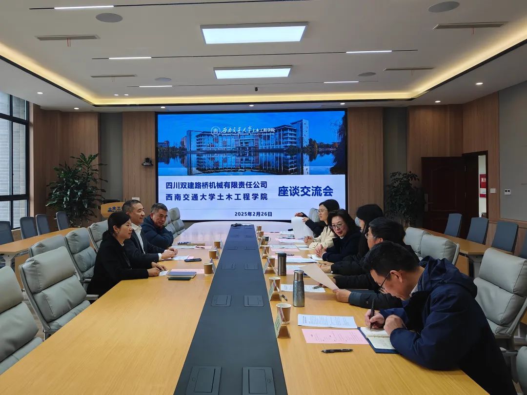 2月26日,jn江南与四川双建路桥机械有限责任公司在犀浦校区X4417A会议室开展座谈交流会。成都市铸造行业协会会长、四川双建路桥机械有限责任公司董事长张建祥、总经理章文、副总经理骆云秀,公司党委书记郑江、党委副书记刘萍、副经理于丽,陆地交通地质灾害防治技术国家工程研究中心副主任庄卫林、科教部部长洪彧及王武斌老师等出席会议。会议由庄卫林主持。