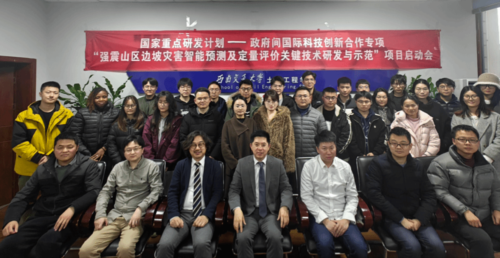 2025年2月20日,国家重点研发计划政府间国际科技创新合作重点专项“强震山区边坡灾害智能预测及定量评价关键技术研发与示范项目启动会”在江南体育官方网站九里校区举行。会议由江南体育官方网站牵头组织。项目负责人张迎宾教授,日方合作单位IMAGEi建设咨询株式会社代表Yusaku Isobe与刘国军博士,中方参与单位四川省公路规划勘察设计研究院有限公司代表何云勇,项目骨干成员余鹏程副教授、魏江涛副教授、李得建副教授以及岩土地震工程团队成员等共30余人现场参会。