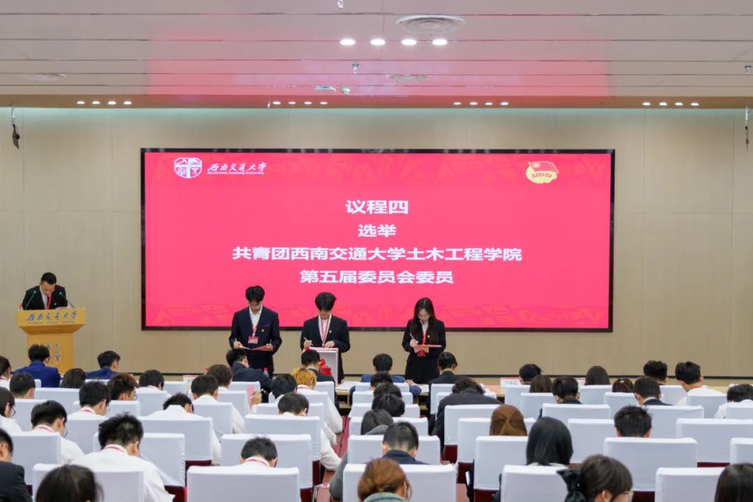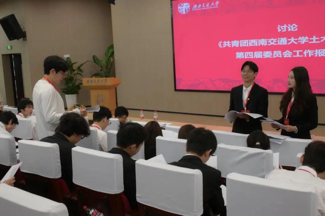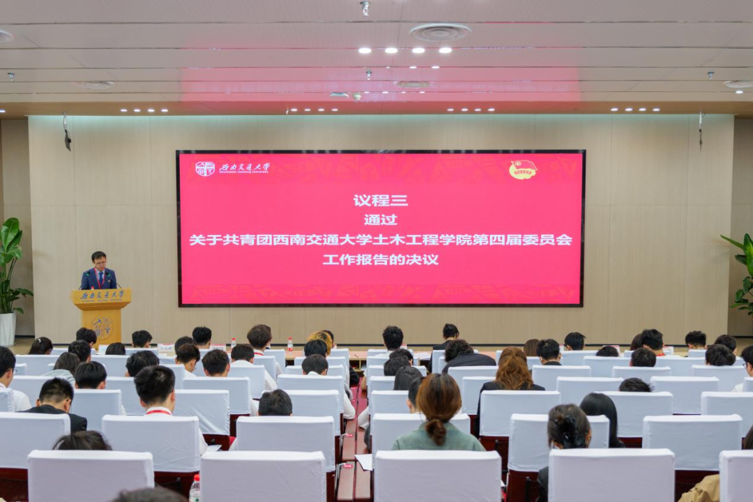 开幕式后,举行大会第一次全体会议,张进同志代表共青团JN体育第四届委员会作了题为“红土精神淬青春力量,实干担当绘土木华章 在习近平新时代中国特色社会主义思想指引下团结引领西南交大土木青年挺膺担当”的工作报告。报告全面、客观地总结了第四次代表大会以来的工作实效,对当前工作中存在的不足进行了分析与思考,进一步提出了未来工作的主要任务和前进方向。