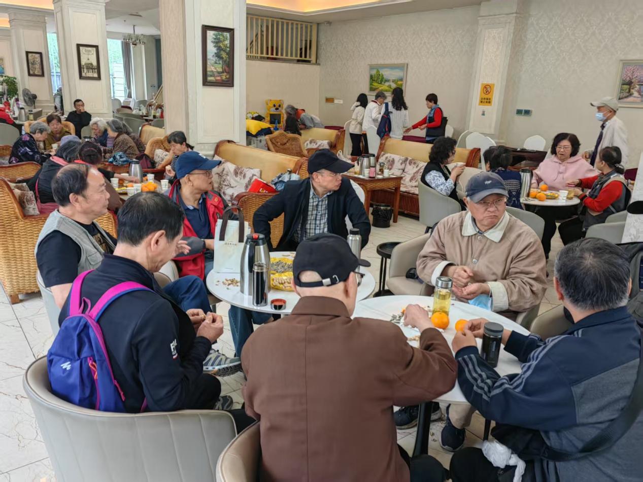 中午,工作人员组织老师们在大厅合影留念,记录这一美好时刻。随后,全体人员共进午餐。餐桌上,大家品尝美味菜肴,分享生活的点滴趣事,尽情享受闲暇时光。餐后,老师们闲坐下来,围在茶桌前与老友品茗聊天,共同回忆在校工作的难忘岁月。