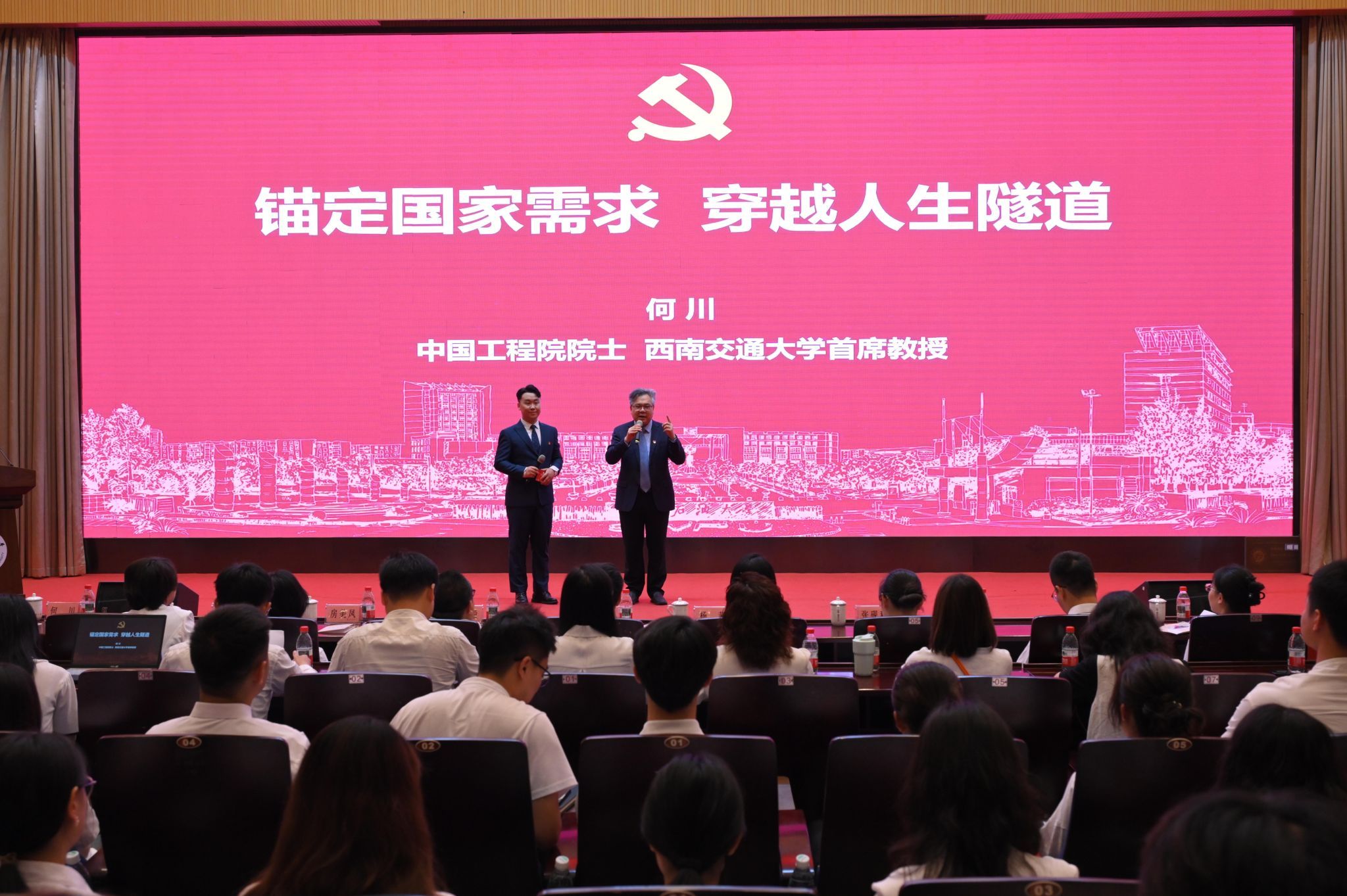 5月30日,由省委组织部、省委教育工委、团省委联合举办的“传承红色基因·争当青年先锋”红色典型进高校宣讲活动在西南石油大学成都校区举行。中国工程院院士、江南体育官方网站首席教授、博士生导师何川以《锚定国家需求穿越人生隧道》为主题,向现场及在线观看的青年师生党员生动讲述了他三十余年如一日扎根交通强国建设一线的奋斗历程。