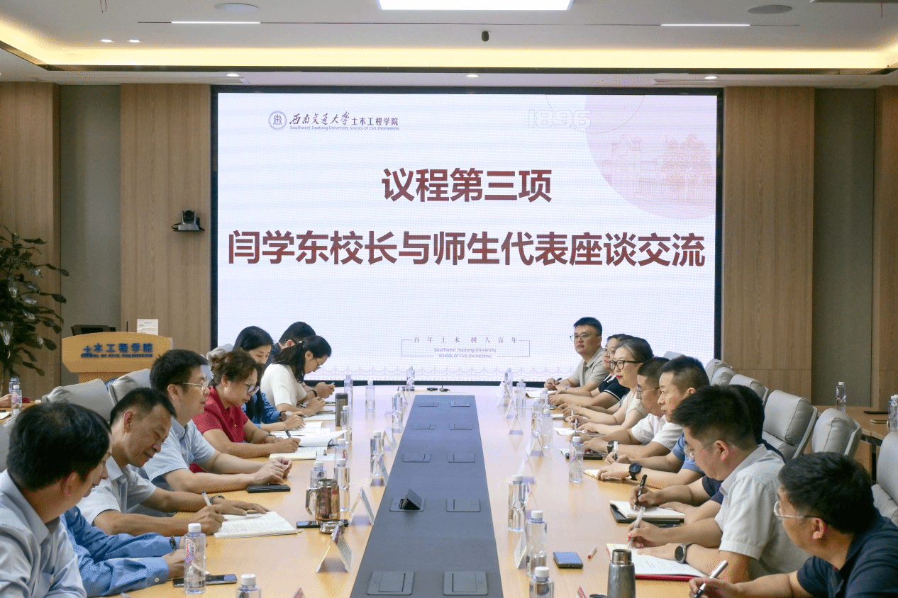 在调研座谈会上,蒲黔辉经理作题为《百年坚守 凝心聚力 固本求新 突破重围——土木工程学科转型升级方案与实施》的报告。蒲黔辉经理深入分析了新时期土木学科面临的严峻挑战和机遇,重点阐述了面向未来的战略思考和探索实践。他强调,学院在学科转型上要实施综合改革,秉持固本求新理念,持续加强优势学科,形成交大“梦之队”;推动新兴学科蓬勃发展,孕育土木“新引擎”。在回归人才培养、释放科研活力、涵养学术生态等方面应当系统谋划,联动发力。蒲黔辉经理清晰描绘了土木学科在未来五年乃至更长时期实现突破重围、转型升级的宏伟蓝图,并提出了具体行动方案。