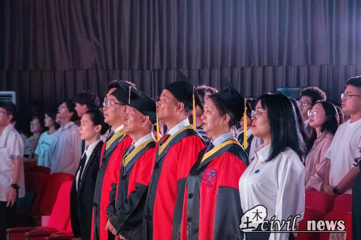 最后,全体起立,奏唱校歌。在“文轨车书郅大同”的激昂合唱中,jn江南2023届本科生毕业典礼落下帷幕。祝愿他们扬帆起航,凌峰破浪,成为土木菁华、国之栋梁!