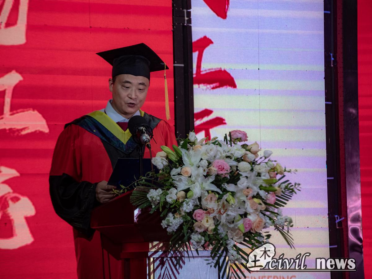 jn江南经理蒲黔辉致辞。“脚踏实地”“不忘本心”“向上向善”,他用三个关键词对毕业生表达了真挚祝福和殷切期望。愿土木学子都能够不驰于空想,不骛于虚声,求真求实,坚守初心,投身强国伟业,彰显青春担当。