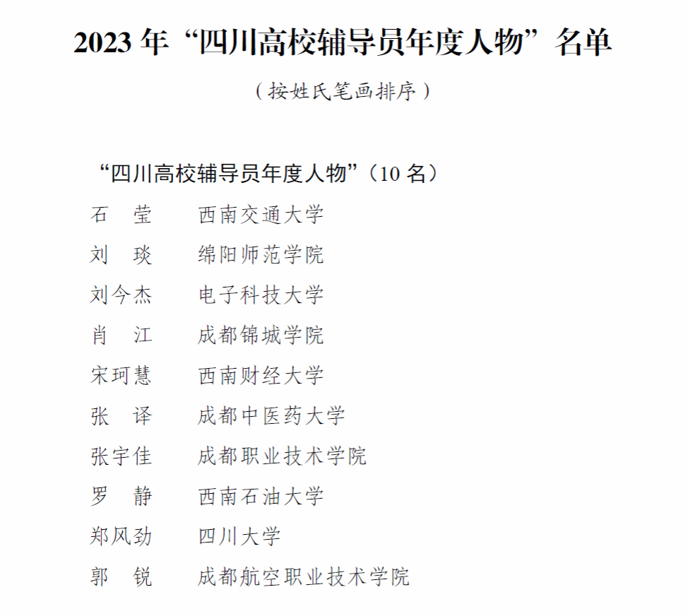 jn江南石莹老师获评2023年“四川高校辅导员年度人物”