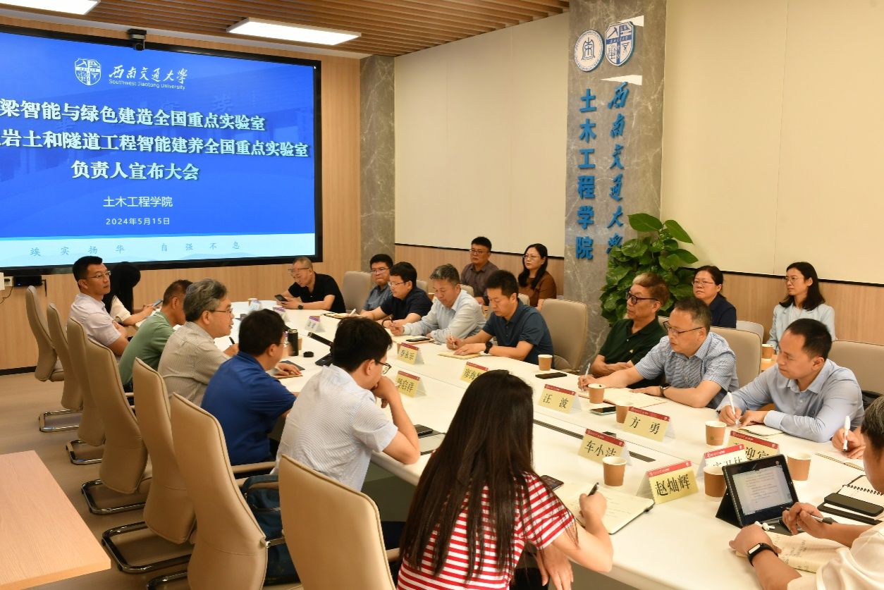 2024年5月15日上午9:30,“桥梁智能与绿色建造全国重点实验室”“极端环境岩土和隧道工程智能建养全国重点实验室”负责人宣布大会在九里工业中心G座一楼会议室顺利召开。集团副董事长、中国工程院院士何川,集团人力资源部部长晏启祥,jn江南经理蒲黔辉出席了会议,jn江南领导班子成员、公司省部级以上实验室平台负责人及系(室、中心)主任等参加了本次会议,会议由蒲黔辉主持。