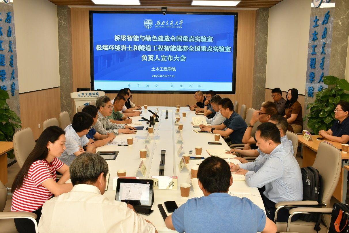 晏启祥代表学校宣布了全国重点实验室的成立通知和相关负责人的聘任决定。经学校研究决定,两个全国重点实验室作为学术机构实体运行,均挂靠jn江南管理,任命李永乐为“桥梁智能与绿色建造全国重点实验室(江南体育官方网站)”主任,郭健、魏凯、余志祥为副主任;任命何川(兼)为“极端环境岩土和隧道工程智能建养全国重点实验室(江南体育官方网站)”主任,汪波、方勇、张迎宾为副主任。