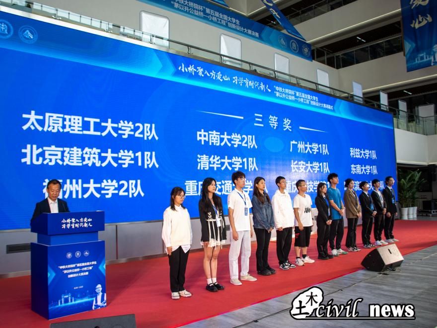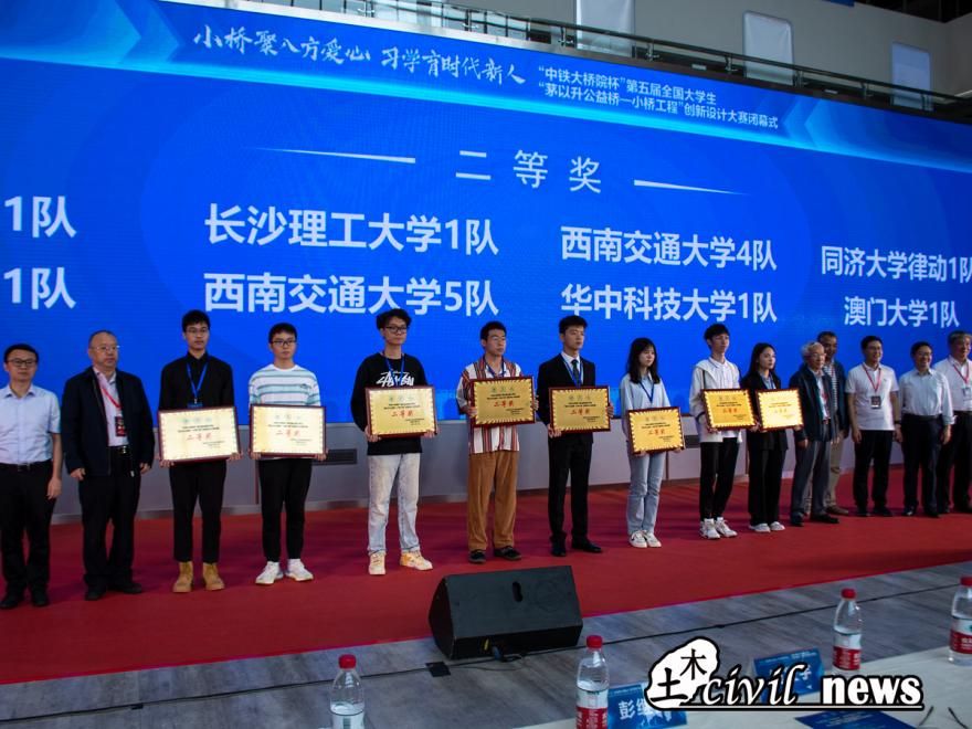 中午12点整,蒲黔辉经理再次感谢所有领导嘉宾、参赛师生、媒体朋友们以及中铁大桥勘测设计院集团有限公司对本次比赛的支持和付出,并宣布“中铁大桥院杯”第五届全国老员工“茅以升公益桥——小桥工程”创新设计大赛圆满闭幕。