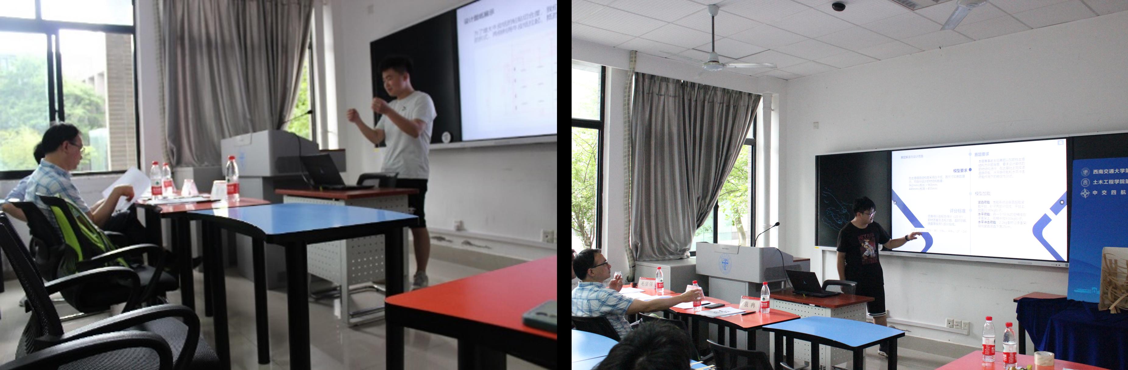 答辩正式开始,各个小组分别派出一名组员上前递交模型的结构设计计算书,并结合PPT对本小组支护结构模型的设计理念、分析计算过程与模型的创新之处进行介绍,各位评委老师依据同学们的介绍提出了一些关于模型设计思路与计算方面的问题,然后结合自身的专业知识与实际经验指出各小组支护模型的不足并提出具体的改进思路。同时告诫各位参赛选手,每一个结构的设计都应该有理论与计算作为支撑。只有这样,最终的模型才可能达到原本设想的强度。