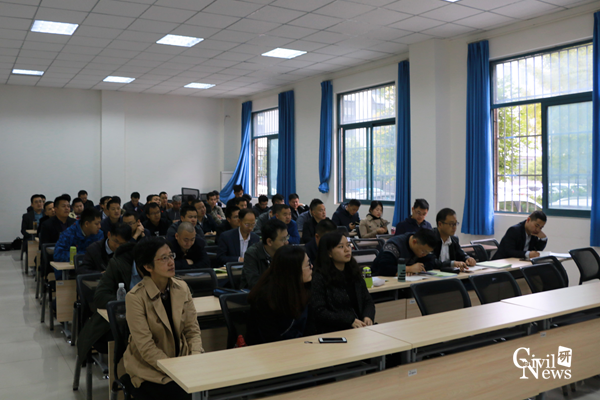 广铁集团工务处邱敏同志代表广铁领导发言。他首先对土木学院的悉心安排表示衷心的感谢。他说,广州铁路集团对此次培训非常重视,培训成绩将纳入员工评价体系,最后,邱敏同志对牵头组织此次培训的工务处表示了感谢,对其他相关部门的大力支持也表达了谢意。