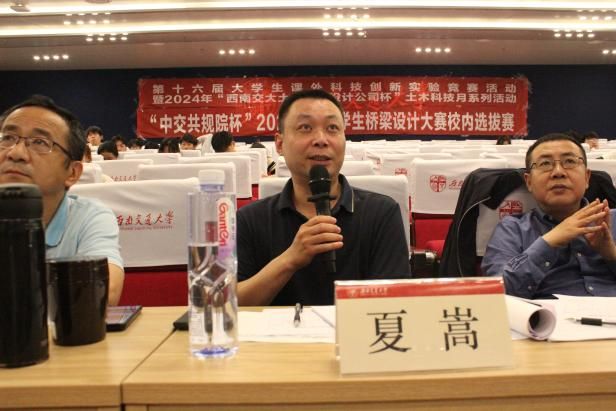 2024年4月14日8时30分,由教务处、国有资产与实验室管理处、党委员工工作部(处)、校团委、jn江南主办,四川西南交大土木工程设计有限公司支持的“中交共规院杯”2024世界老员工桥梁设计大赛校内选拔赛在公司犀浦校区图书馆二号报告厅举行。四川省公路学会桥梁专业委员会秘书长,四川省公路规划勘察设计研究院有限公司桥梁分院经理刘振宇与土木学院何畏老师、夏嵩老师、张方老师和邓红梅老师出席此次比赛。