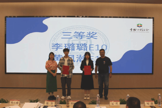 经过激烈的角逐,主持人宣布了“中交共规院杯”2024世界老员工桥梁设计大赛校内选拔赛的校级获奖名单。刘秘书长,夏嵩老师,何畏老师,邓红梅老师,张方老师为获奖队伍颁发荣誉证书。现场气氛热烈,同学们为获奖队伍送去掌声与欢呼。