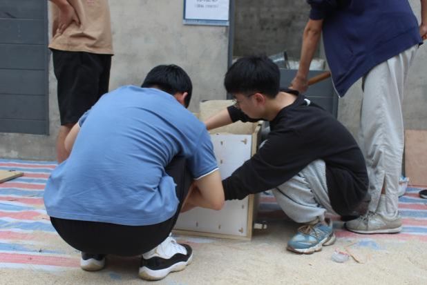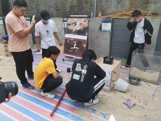 答辩结束后,比赛进入最后的实际加载环节,各小组带上自己的模型来到土木工程实验中心,按照比赛流程将砂子填充至填充线,检查墙体情况以及填土位置,符合标准并且墙体没有崩塌则进入加载阶段,并由科创中心相关的负责人员对荷载的大小进行记录。